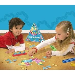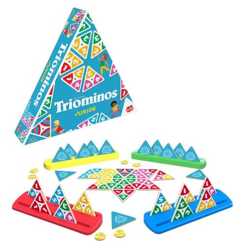 Descubra o poder da diversão inteligente com o Triominos, o dominó triangular! Um jogo envolvente que une lógica e estratégia, ideal para todas as idades! Nessa versão Junior, os números das peças são coloridos para facilitar o encaixe das peças e os pontos são contabilizados pelas moedinhas. Junte à família ou aos amigos, encaixe as peças triangulares ou pelos números ou cores e viva momentos inesquecíveis!Idade indicativa: + 5 anos