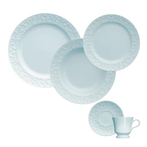 Jogo Jantar Chá 30 Peças Azul Vintage Relevo Tassel Germer Porcelanas