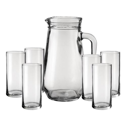 Feita inteiramente de vidro tansparente esta jarra é ideal para servir de maneira muito elegante. Ideal para Bares, Restaurantes e Buffet. Indicado para sucos, água, refrigerante, entre outros. O jogo de copos é fabricado em vidro altamente resistente para garantir durabilidade, beleza e qualidade para seu dia a dia atendendo diversas necessidades com mais firmeza durante seu uso. A escolha ideal de quem busca um toque requinte, prezando o bem-estar e a qualidade.