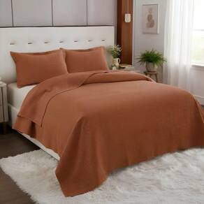 Jogo King Size Barcelona 100%algodão Premium Conforto Luxo Cor: TERRACOTA Quer dar um upgrade no seu quarto sem gastar muito A Colcha King Size Barcelona entrega luxo, maciez e qualidade premium em uma peça que transforma o visual da cama na hora.