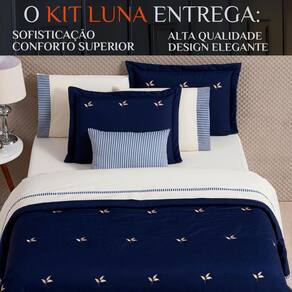 Jogo King Size Colcha Luna 05 Pcs 200 Fios Bordada Luxuosa SANTORINI COR: AZUL Transforme seu Quarto em um Palácio de Luxo com o Cobre Leito Super King Victoria 200 Fios