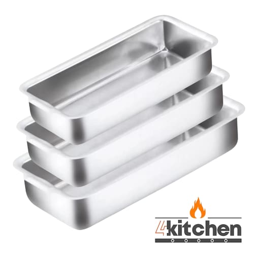 Conteúdo da embalagem: 03 (Três) Formas Assadeiras Pão Caseiro Bolo Inglês Retangular Alumínio