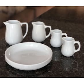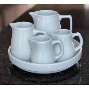Jogo Kit 5 peças p/ Molhos e Caldas - Bandeja e jarras - Porcelana Branca
