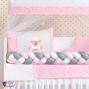 KIT BERÇO OVELHA 14 PEÇAS Contém: 1 Edredom 1,30 m x 75 cm 1 Almofada nuvem 40 cm x 20 cm 1 Travesseiro 100% algodão 40 cm x 30 cm. 1 Cabeceira 57 cm x 37 cm 1 Lateral 1,25 m x 25 cm 1 Trança 1,25 m x 12 cm 1 Lençol de cima 1,30 m x 90 cm 1 Fronha 28 cm x 38 cm 1 Bandô de mosqueteiro 1,40 m x 20 cm 1 Mosqueteiro 4,50 m x 1,50 m 1 Trocador 60 cm 40 cm. 1 Lençol 1,20 m x 70 cm. 1 Saia box 1,30 m x 70 cm x 30 cm. 1 Travesseiro 100% Algodão 0,40 cm x 0,30 cm. Observação: Kit de berço que serve em berços padrão nacional e americano Possui zíper para retirar os enchimentos Tecido de qualidade Composição: Tecido estampado: 100% algodão Tecido liso: 50% poliéster / 50% algodão Enchimento: 100% poliéster Mosquiteiro: 100% poliamida Travesseiro: 100% algodão / fibra silicone Marca: Não Informado