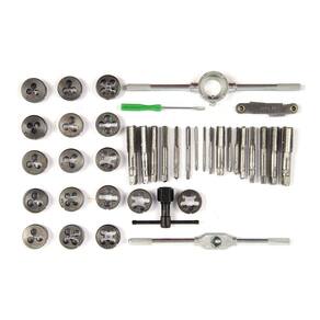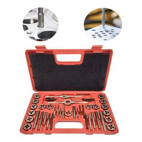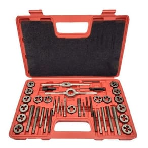 Composto por 40 peças, sendo: - 17 Cossinetes: 3 x0.5 - 3 x 0.6 - 4 x 0.75 - 4 x 0.7 - 5 x 0.8 - 5 x 0.9 - 6 x 0.75 - 6 x 1 - 7 x 0.75 - 7 x 1 - 8 x 1.25 - 8 x 1 - 10 x 1.25 - 10 x 1.5 - 12 x 1.75 - 12 x 1.5 - 1/8NPT-27 - 01 Porta Cossinete - 02 Vira macho - 17 Machos manuais: M3 x 0,5 - M3 x 0,6 - M4 x 0,7 - M4 x 0,75 - M5 x 0,8 - M5 x 0,9 - M6 x 0,75 - M6 x 1,0 - M7 x 0,75 - M7 x 1,0 - M8 x 1,0 - M10 x 1,25 - M10 x 1,5 - M12 x 1,5 - M12 x 1,75 - 1/8NPT27 - 01 Calibrador de rosca - 01 Chave de fenda - 01 Maleta para a acomodação das ferramentas Marca: Não Informado