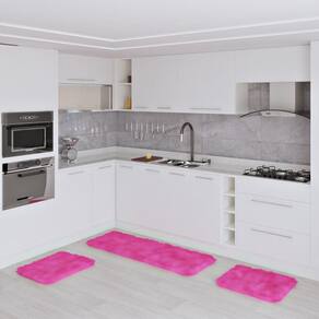 Jogo Kit Tapete Cozinha Anti Derrapante 3 Uni Rosa