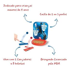 Jogo lance livre é o jogo de basquete licenciado pela NBA, vem com 2 laçadores e 8 bolinhas. Os jogadores podem fazer cestas de 2 ou 3 pontos. *As cores do produto podem variar das apresentadas nas fotos.
