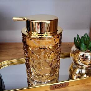 Transforme a rotina diária em um ritual de luxo com o nosso Porta Sabonete Líquido em Vidro Âmbar. Com um elegante relevo e tampa touch dourada, este dispensador não é apenas funcional, mas também um destaque de estilo para o seu banheiro.
