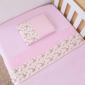 Jogo Lençol 3 Peças 100% Algodão Berço Raminho - Branco