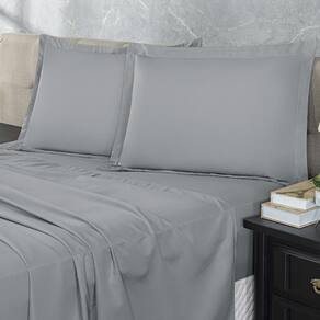 Jogo Lençol 300 Fios Casal Padrão 4 Peças Cinza