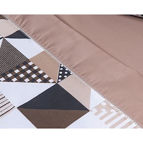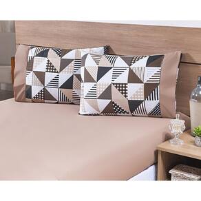 Jogo lençol 4 peças cama viúva 1,88mx1,28mx25cm 100% algodão 180 fios geométrico cáqui Thais enxovais Jogo de lençol 4 peças cama 1,88 x 1,28 x 0,25 cama viúva 100% algodão 180 fios com ponto palito
