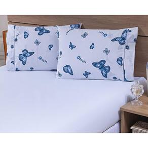 Jogo lençol 4 peças cama viúva 1,88mx1,28mx25cm 100% algodão 180 fios borboletas azul Thais enxovais Jogo de lençol 4 peças cama 1,88 x 1,28 x 0,25 cama viúva 100% algodão 180 fios com ponto palito