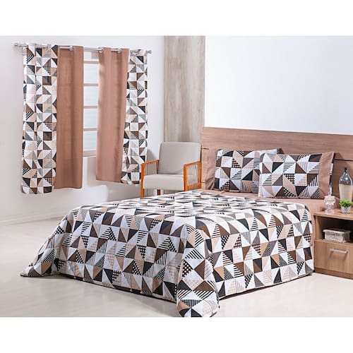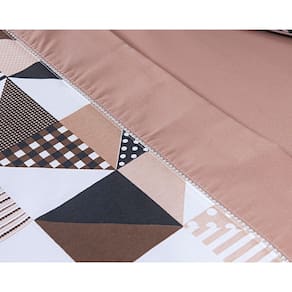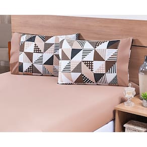 Jogo Lençol 4 Peças Cama Viúva 1,88mx1,28mx30cm 100% Algodão 180 Fios Geométrico Cáqui