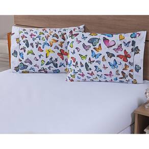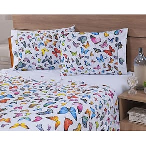 Jogo lençol 4 peças cama viúva 2,03mx1,20mx30cm 100% algodão 180 fios ponto palito borboletas coloridas