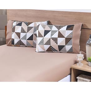 Jogo lençol 4 peças cama viúva 2,03mx1,20mx35cm 100% algodão 180 fios ponto palito geométrico cáqui Thais enxovais Jogo de lençol 4 peças cama 2,03x 1,20 x 0,35 cama viúva 100% algodão 180 fios com ponto palito