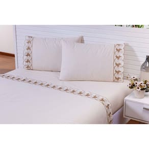 Jogo lençol 4 peças cama viúva percal 200 fios bordado palha com caqui Thais enxovais