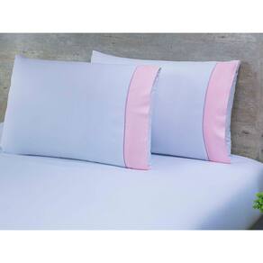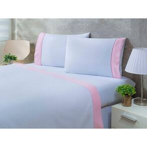 100% ALGODÃO 200 FIOS COM PONTO PALITO E BARRADO ROSA