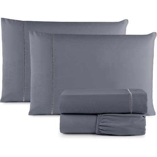 Jogo Lençol 4 Peças Viúva 203x120x25 Micro Percal 400 Fios Cinza