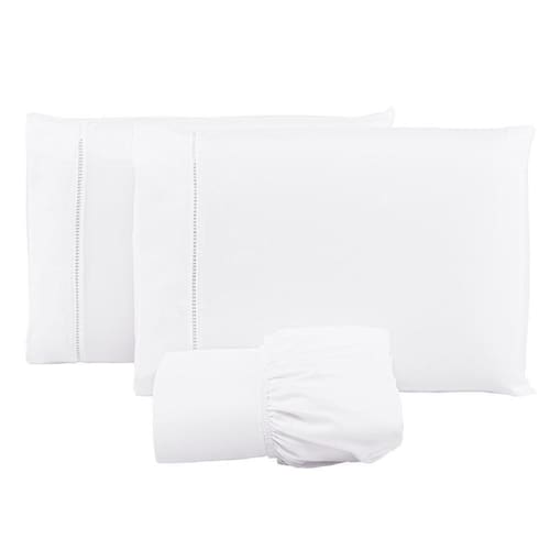Marca: Enxovais Davy | Estampa: Não se Aplica | Medidas: 2 fronhas com ponto palito Tamanho: 0,50m x 70cm1 Lençol de baixo com elástico 2,05m x 2,50m x 30cm | Número de Peças: 03 Peças | Material: Poliéster | Cama Indicada: Casal