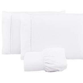 Marca: Enxovais Davy | Estampa: Não se Aplica | Medidas: 2 fronhas com ponto palito Tamanho: 0,50m x 70cm1 Lençol de baixo para colchão de 1,93m x 2,03m até 30cm de altura | Número de Peças: 03 Peças | Material: Poliéster | Cor Predominante: Branco | Cama Indicada: King