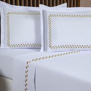 O Jogo de lençol 100% Algodão com 04 peças com detalhe Bordado na vira e na fronha com alto padrão de qualidade, proporciona conforto e sofisticação.