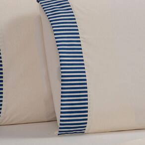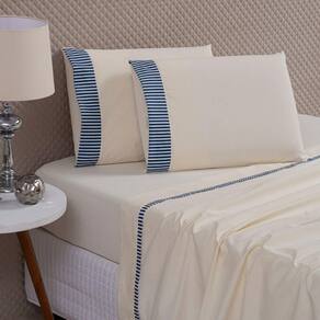 O Jogo de lençol Algodão com 04 peças com detalhe em listas na vira e na fronha com alto padrão de qualidade, proporciona conforto e sofisticação.