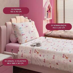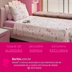 - O Jogo Lençol Barbie é confeccionado em 100% algodão, garantindo um toque macio e suave.