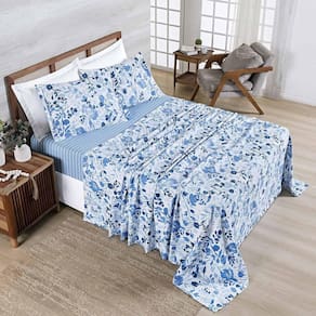 Jogo Lençol Belle King 400 Fios Estampado 4Pçs Florido Azul