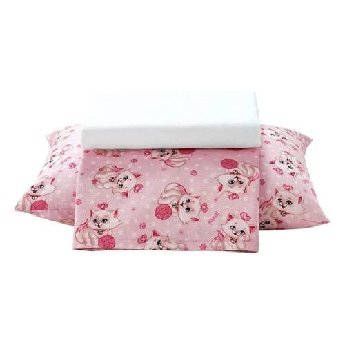 Jogo Lencol Berco Algodao 3 Pecas Priori Estamapdo Gatinha Dohler