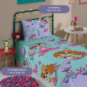 Jogo Lençol Cama Menina Patrulha Canina 100% Microfibra 2Pçs