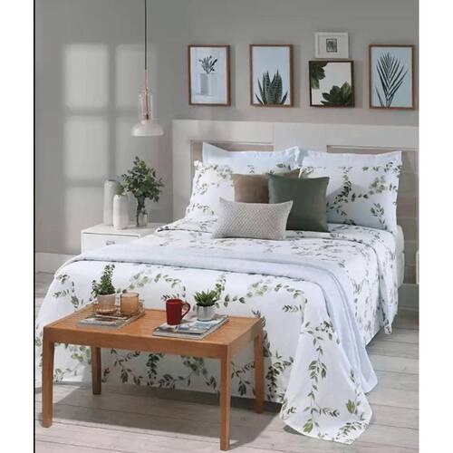 - Tecido de 150 fios, 100% algodão e fio penteado para maior durabilidade e resistência. - Tecnologia sustentável de estamparia digital que proporciona estampas em alto brilho com riqueza de cores e detalhes. - Fronhas com estampa corrida e 2 abas laterais para um toque de estilo na decoração do quarto. - Lençol de baixo com elástico e cor sólida para um ajuste perfeito ao colchão. - Medidas ideais para camas de casal: lençol de 2,20m x 2,50m, lençol com elástico de 1,38m x 1,88m x 35cm e duas fronhas de 70cm x 50cm.