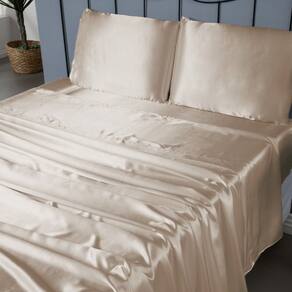 O Jogo de lençol para cama Casal padrão com 04 peças confeccionado em Cetim Charmousse. Possui alto padrão de qualidade, proporciona conforto e sofisticação.