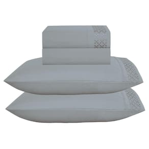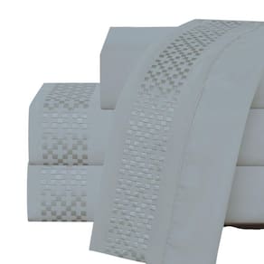 O Jogo de lençol para cama Casal Padrão com 04 peças confeccionado em tecido Percal 300 fios, vira do lençol de cima e fronha bordada. Possui alto padrão de qualidade, proporciona conforto e sofisticação.