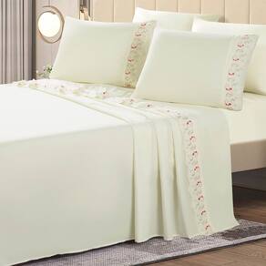 O Jogo de lençol para cama Casal Padrão com 04 peças confeccionado em tecido Percal 300 fios, vira do lençol de cima e fronha bordada. Possui alto padrão de qualidade, proporciona conforto e sofisticação.