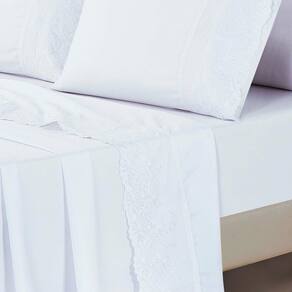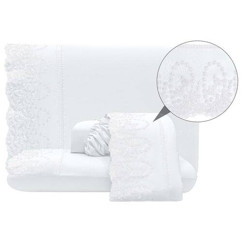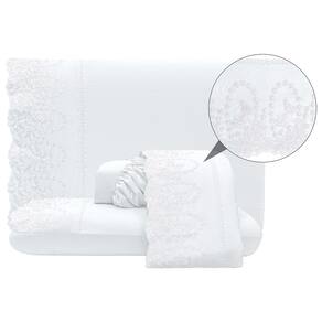 Jogo Lençol Casal Jade Bordado Inglês 4pç 100% Poliéster - Branco