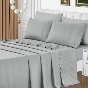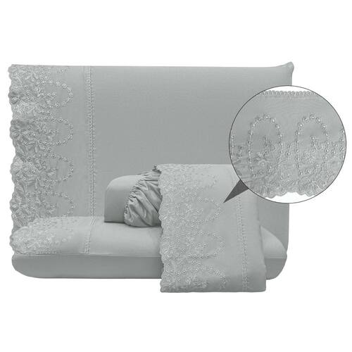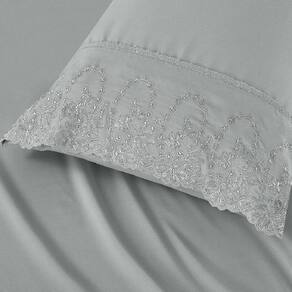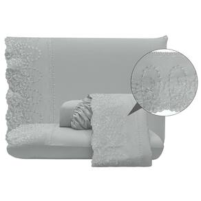 O Jogo de lençol para cama Casal Padrão com 04 peças confeccionado em tecido Percal 300 fios, detalhes em bordado inglês na fronha e no lençol de cima. Possui alto padrão de qualidade, proporciona conforto e sofisticação.