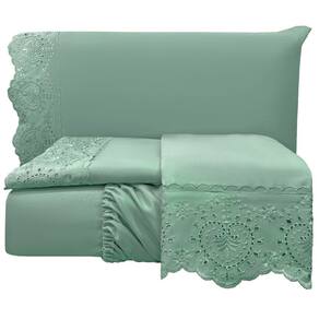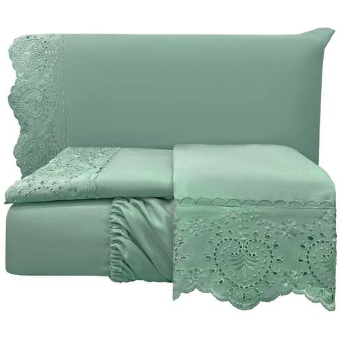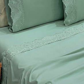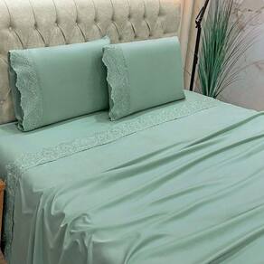 O Jogo de lençol para cama Casal Padrão com 04 peças confeccionado em tecido Percal 300 fios, detalhes em bordado inglês na fronha e no lençol de cima. Possui alto padrão de qualidade, proporciona conforto e sofisticação.