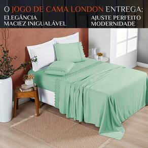 Jogo De Lençol Casal Queen London Bordado Inglês 200 Fios 04 Pçs NOBLESS COR: Verde Transforme sua Cama em um Paraíso de Luxo com o Jogo de Lençol Casal Queen London Bordado Inglês 200 Fios - 04 Peças