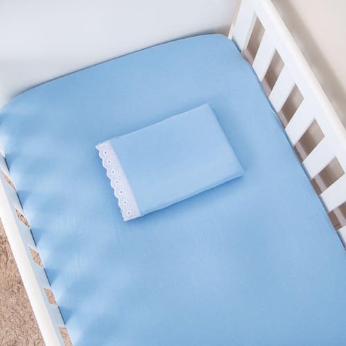 Jogo Lençol E Fronha Berço Americano 2 Peças Azul Claro
