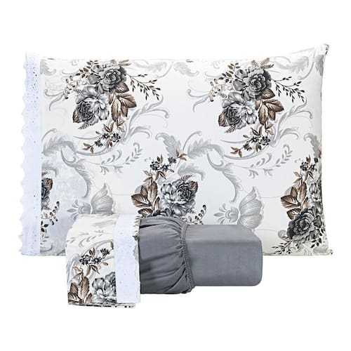 Se você busca uma opção para deixar o seu quarto mais bonito e sofisticado, você precisa deste Jogo Lençol Estampado Casal Super King 03 Peças Flores Cinza. Confortável e macio, esse produto irá proporcionar mais momentos relaxantes para você.Contém: 01 lençol com elástico 3,20 x 3,00 x 3002 fronha com detalhe em lese 70 x 50 Composição: Lençol tecido microfibra 100% poliésterFronhas tecido algodão 160 fios Orientações de cuidados:Não utilizar produtos alvejantes a base de cloro água sanitária, água de lavadeira, entre outros ;Faça enxágue final abundante para retirar todo o excesso de sabão e amaciante, evitando que a peça fique esbranquiçada;Tons críticos e cores fortes desbotam com mais facilidade evite exposição prolongada ao sol ;Colocar sal no último enxágue em peças escuras evita que solte tinta e manche
