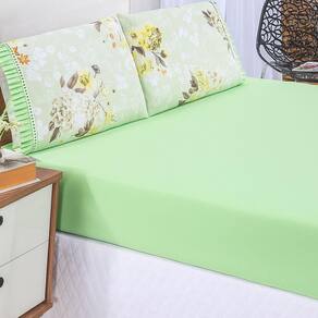 Jogo Cama Lençol Fiore Queen Estampado 180 Fios 100% Algodão com Babadinho 3 Peças Verde Floral Deixe o visual do seu quarto com o Jogo de Lençol Fiore, confeccionado em Percal 180 fios 100% algodão, que proporciona toque suave, frescor e respirabilidade durante o sono. Suas estampas florais encantadoras e os delicados babadinhos trazem um toque romântico e elegante à decoração. O lençol de baixo com elástico ajustável garante praticidade e um caimento perfeito ao colchão.