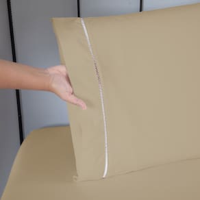 Jogo de Lençol King 4 Pçs Percal 140 Fios Liso Ponto Palito - Detalhe ponto palito nas fronhas e ótimo tamanho de transpasse, evitando que fique saindo do travesseiro; - Jogo de lençol completo, acompanha lençol de cima (virol), podendo usar para se cobrir; - Elástico em volta de todo o lençol debaixo; - Ideal para compor a decoração do quarto, podendo facilmente combinar. A coleção Ponto Palito irá transformar suas noites de sono. O produto é perfeito para quem procura sofisticação sem abrir mão de um bom clássico. Perfeito para complementar suas composições, sejam elas básicas ou cheia de personalidade. Confeccionado em percal 140 fios, o lençol garante toque fresco, resistência e praticidade para completar seu dia dia e noites de sono. CONTÉM NA EMBALAGEM: 01 Lençol sem elástico (virol/de cima) 01 Lençol com elástico 02 Fronhas TAMANHOS/MEDIDAS Lençol sem elástico: 2,85m comp. x 2,80m larg. Lençol com elástico: 2,03m comp. x 1,93m larg. x 40cm alt. Fronhas: 70cm comp. x 50cm larg. COMPOSIÇÃO: Tecido 80% algodão / 20% poliéster - percal 140 fios. ATENÇÃO! A TONALIDADE DA COR PODE VARIAR DE ACORDO COM CADA TELA DE DISPOSITIVO. Marca: Grande Enxovais Marca: Grande Enxovais