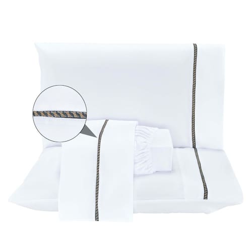 O Jogo de lençol para cama King com 04 peças confeccionado em tecido Percal 300 fios, detalhes em Guipir na fronha e no lençol de cima. Possui alto padrão de qualidade, proporciona conforto e sofisticação.