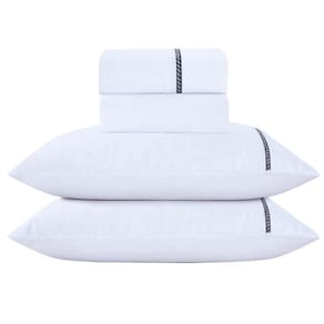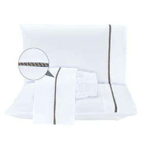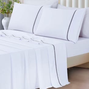 O Jogo de lençol para cama King com 04 peças confeccionado em tecido Percal 300 fios, detalhes em Guipir na fronha e no lençol de cima. Possui alto padrão de qualidade, proporciona conforto e sofisticação.