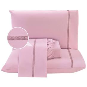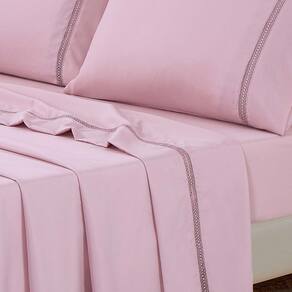 O Jogo de lençol para cama King com 04 peças confeccionado em tecido Percal 300 fios, detalhes em Guipir na fronha e no lençol de cima. Possui alto padrão de qualidade, proporciona conforto e sofisticação.