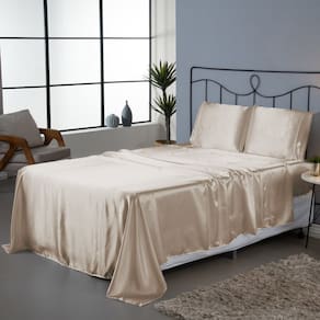 O Jogo de lençol para cama King com 04 peças confeccionado em Cetim Charmousse. Possui alto padrão de qualidade, proporciona conforto e sofisticação.