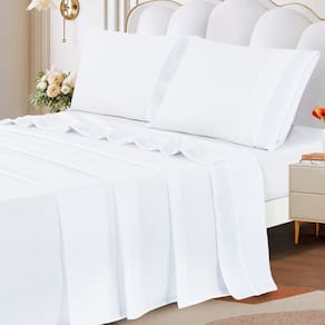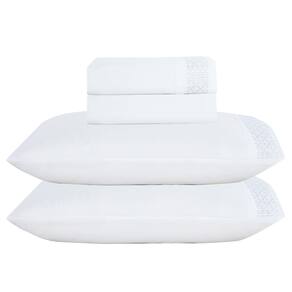 O Jogo de lençol para cama King com 04 peças confeccionado em tecido Percal 300 fios, detalhes em bordado na fronha e no lençol de cima. Possui alto padrão de qualidade, proporciona conforto e sofisticação.
