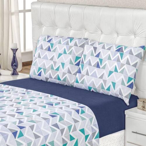 Jogo De Lençol King Em Malha 100% Algodão 4 Peças - Geométrico Azul Jogo de lençol king em malha 100% algodão 4 peças Utilizamos matérias-prima de excelente qualidade que resistem à processo de lavagem, mantendo a beleza e durabilidade do produto. Contém na embalagem: 01 lençol de cima 2,80m x 2,50m 01 lençol de baixo com elástico p/ colchão 2,03m x 1,93m x 40 altura 02 fronhas 70cm x 50cm Composição: 100% algodão - fio 30/1 penteado 135gr/m Obs: a foto é de casal, mas corresponde ao lençol de solteiro Atenção: a foto apresentada no anuncio pertence ao nosso atelier, é a foto do produto cuidado com as falsificações As cores podem mudar de acordo com o monitor. fique atento à descrição do produto.