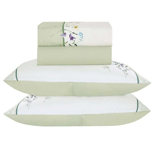 O Jogo de lençol para cama King com 04 peças confeccionado em tecido Percal 300 fios, estampa floral na fronha e no lençol de cima. Possui alto padrão de qualidade, proporciona conforto e sofisticação.