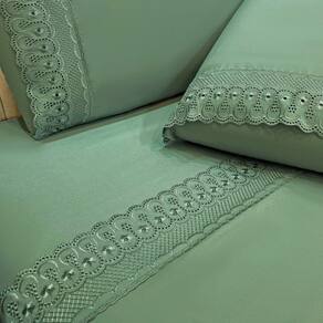 O Jogo de lençol para cama King com 04 peças confeccionado em tecido Percal 300 fios, detalhes em bordado na fronha e no lençol de cima. Possui alto padrão de qualidade, proporciona conforto e sofisticação.